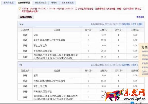 1.服務(wù)商設(shè)置:包括圓通速遞、中通快遞、宅急送、韻達(dá)快遞等經(jīng)常用到的一些物流公司,對(duì)此可以進(jìn)行編輯,對(duì)于中小賣家來說,若有和快遞公司合作的,可以在此進(jìn)行編輯,對(duì)于大多數(shù)賣家來說是不需要在這上面操作的。