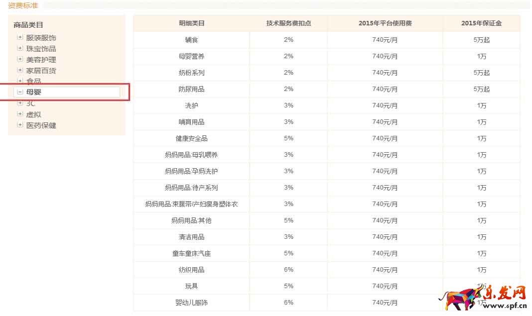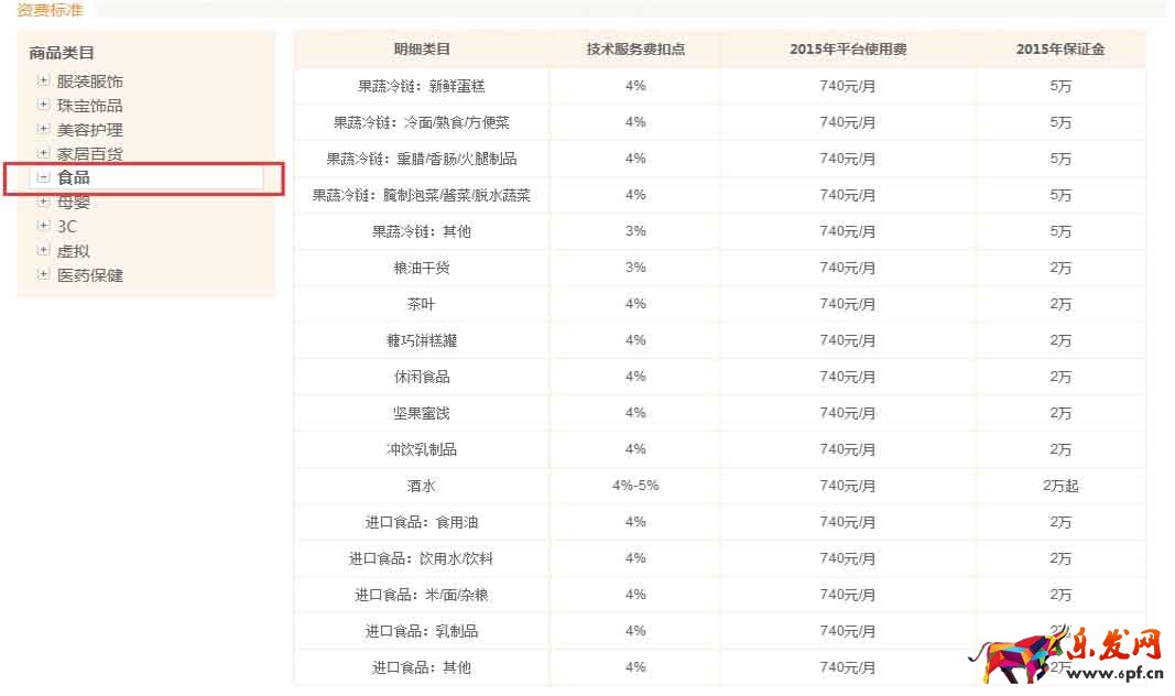 下圖為各類目商品的資費(fèi)標(biāo)準(zhǔn)(點(diǎn)擊放大):