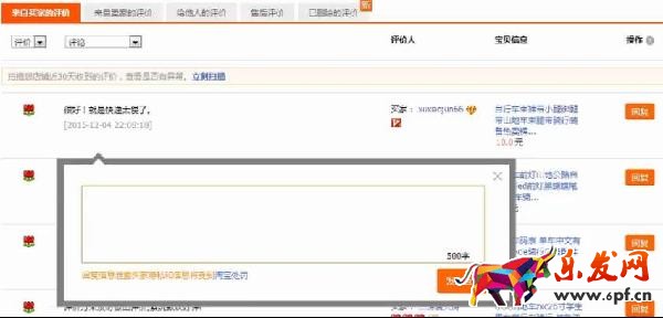 4、回復(fù)訂單,在評(píng)論最右方,點(diǎn)擊評(píng)價(jià)后回復(fù)按鈕,可以對(duì)買家的評(píng)論進(jìn)行回復(fù)說(shuō)明。