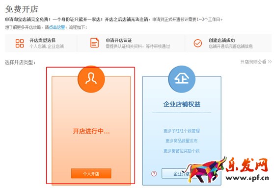 2、進(jìn)入到開網(wǎng)店的頁面,由于存在個(gè)人開網(wǎng)店和企業(yè)開網(wǎng)店的差異,所以這里先來說說個(gè)人店鋪是怎么做。
