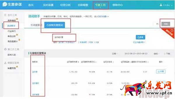 4、生意參謀-專題工具-選詞助手-行業(yè)相關(guān)搜索詞-無線