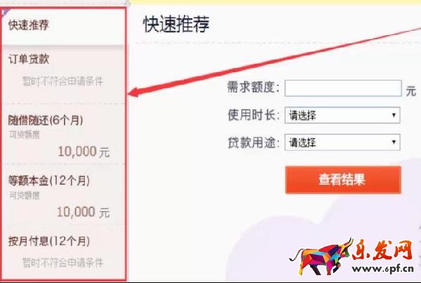 3.1.1快速推薦:需求額度和使用時(shí)長(zhǎng)可根據(jù)需要填寫,然后選擇貸款用途,填寫完成之后可點(diǎn)擊“查看結(jié)果”按鈕,即可看到淘寶店鋪是否有進(jìn)行淘寶貸款的資格。