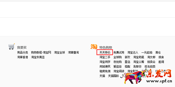 登錄成功后,我們回到淘寶首頁頁面,在頁面右上角,我們能看到“網(wǎng)站導(dǎo)航”,鼠標點擊,這時候我們看到下圖的頁面,,紅色框框哪里就是天天特價。