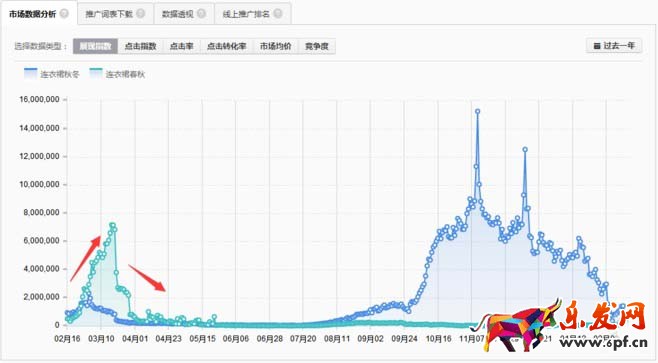 而從流量解析的數(shù)據(jù)分析,在過去的一年里,“連衣裙春秋“ 的類目在2月份后行業(yè)上升的趨勢是較快的, “連衣裙秋冬” 行業(yè)趨勢較高餓是在9月-1月份。店鋪要及時做好新品寶貝的更替準備。