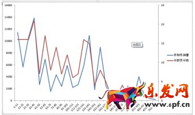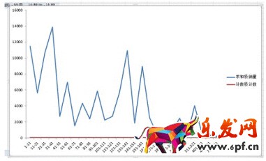藍(lán)色代表銷量,紅色代表的是價(jià)格區(qū)間的賣家數(shù)。