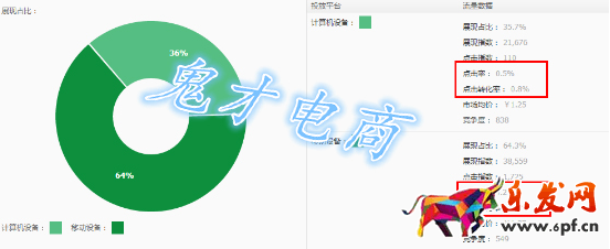 當(dāng)創(chuàng)意質(zhì)量這一項不滿格的時候,很大程度就是點擊率不好,點擊率不好可能是該關(guān)鍵詞的問題,也可能是推廣圖的問題。首先要查看一下這個關(guān)鍵詞最近一段時間點擊率數(shù)據(jù)表現(xiàn),從這里可以看出PC端和無線端的點擊率相差很大,一般PC點擊率做到2%創(chuàng)意質(zhì)量就可以滿格,但是移動端可能要達到5%才能達到滿格,可以分析出該關(guān)鍵詞是需要加強哪個平臺的點擊率,根據(jù)在兩個平臺的表現(xiàn)決定該關(guān)鍵詞后期重點投放平臺。