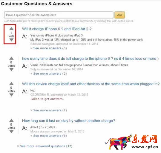 另外補(bǔ)充一點(diǎn),如果人員充足,可去閱讀幾個競爭對手的同類產(chǎn)品的一二星review,仔細(xì)琢磨,必有收獲。Answered Questions功能通常來講,功能性比較強(qiáng)的產(chǎn)品,可能會有很多買家提出問題,而設(shè)計型的產(chǎn)品相對會比較少。問題提問的越多,有幾種情況,listing頁面本身的描述做得不仔細(xì)。產(chǎn)品本身比較復(fù)雜。很多潛在顧客鐘愛這個產(chǎn)品。另外,vote的數(shù)字越多,說明此問題的重要性。