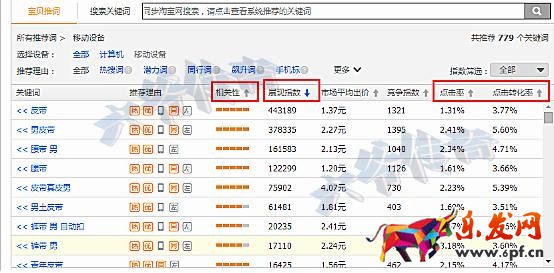 相對簡單、方便,參考性強(qiáng)的選詞方法,可根據(jù)系統(tǒng)推薦結(jié)果的相關(guān)性、展現(xiàn)、點(diǎn)擊率、轉(zhuǎn)化率來選擇相關(guān)關(guān)鍵詞。