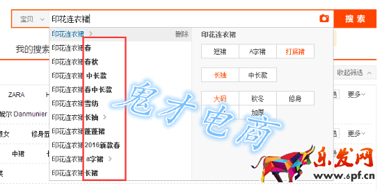 相關(guān)詞:比如搜索框輸入印花連衣裙,系統(tǒng)會(huì)有推薦詞,包含春秋、雪紡、新款等等,這都是相關(guān)詞,而這些詞也是賣家們要經(jīng)常觀察和投放使用的,精準(zhǔn)度比較高。
