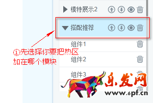 ? 答:您需要先在右側(cè)選擇熱區(qū)要加在哪個(gè)模塊(前面有三角型的才是模塊),如上面教程的圖一