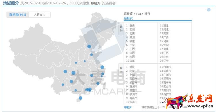 第三,設(shè)置適宜的區(qū)域投放。 例如涼鞋,3、4月份北方氣溫仍然波動(dòng),可以參考去年同時(shí)間段的行業(yè)人群地域數(shù)據(jù),再結(jié)合之前直通車地域投放的報(bào)表數(shù)據(jù),進(jìn)行篩選,去掉一些無效的投放地域。