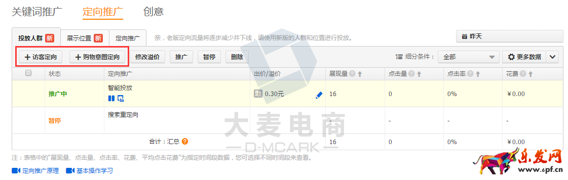 4. 開(kāi)啟淘寶直通車定向推廣測(cè)試;