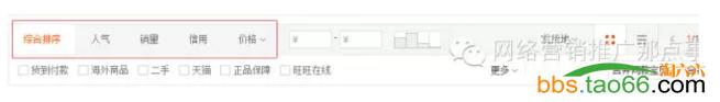 如圖所示,目前淘寶的排序規(guī)則分為綜合排序、人氣、銷量、信用、價格五個排序規(guī)則。淘寶SEO最主要的就是對于綜合排序進(jìn)行操作。