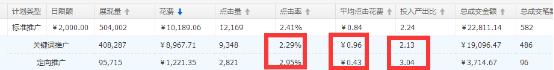 可以看出定向的點(diǎn)擊率比關(guān)鍵詞搜索還要高,ppc比較低,投產(chǎn)也高,所以定向今年必須要嘗試去做去測(cè)試,效果好的話就逐步以上坡法提高定向流量。