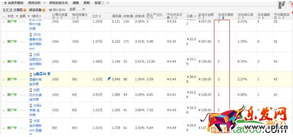 分析:(1)從寶貝的一個標題上可見,寶貝主要以大碼女裝為主的,因此在添加關鍵詞上,以“大碼”和“胖mm”這2個方面進行添加。(2)從寶貝的一個關鍵詞上看,能夠成交的關鍵詞是較多的,但是這些關鍵詞的成交筆數(shù)都是較少且存在偶然情況。