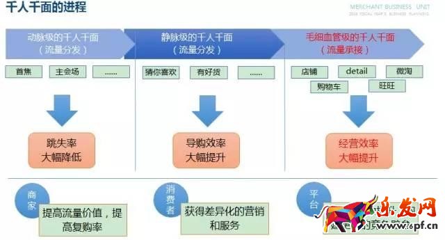 在這兩個(gè)背景下,千人千面的發(fā)展大致經(jīng)過了三個(gè)不同的階段,第一個(gè)階段是設(shè)置不同的會(huì)場,第二個(gè)階段則是猜你喜歡的推送階段,而目前就是第三個(gè)階段,之前針對(duì)用戶的推送都是在流量大池中完成的,但是這個(gè)階段的千人千面是實(shí)現(xiàn)商家到店流量的精準(zhǔn)運(yùn)營。