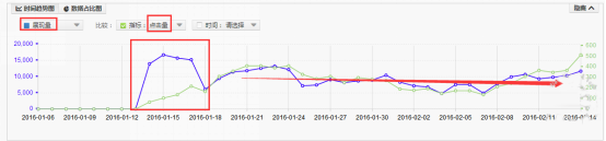 分析:該賬戶屬于廚房/烹飪用具類目。開始調(diào)整時(shí),首先是引流優(yōu)化賬戶的點(diǎn)擊率,針對不相關(guān)詞,高展現(xiàn)流量的詞進(jìn)行優(yōu)化。經(jīng)過優(yōu)化后流量有上升并趨于穩(wěn)定走勢。兩款寶貝的roi比較波動(dòng),無明顯上升趨勢。