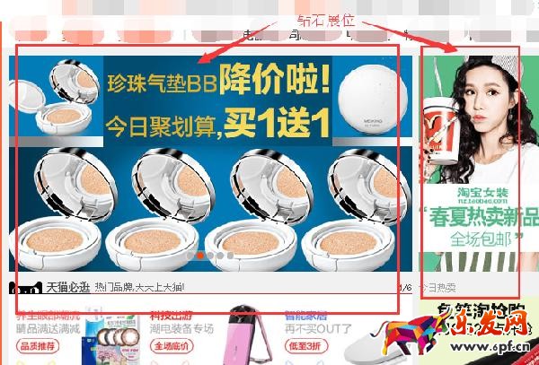 鉆石展位的位置在哪里呢?在淘寶首頁的最上面,看圖: