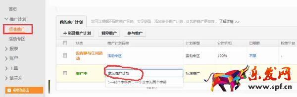 2.然后就會(huì)進(jìn)入到推廣計(jì)劃后臺(tái),在標(biāo)準(zhǔn)計(jì)劃中,會(huì)自動(dòng)出現(xiàn)一個(gè)默認(rèn)推廣計(jì)劃,這時(shí)候就可以修改推廣計(jì)劃的名字?!綪S:這里修改推廣計(jì)劃的名字,主要是為了方便管理,不會(huì)影響到推廣內(nèi)容。】