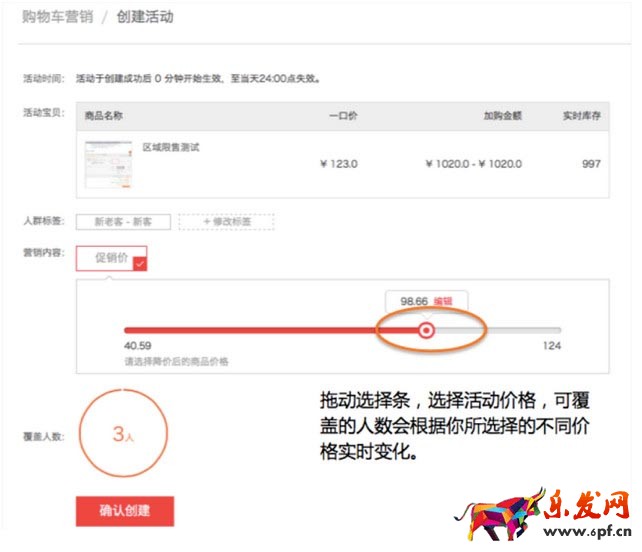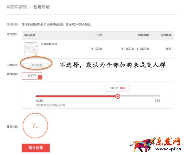 3、優(yōu)惠、圈人:基于選好的寶貝和選定的人群標(biāo)簽,確定限時(shí)活動(dòng)價(jià)格,最終觸達(dá)的人。