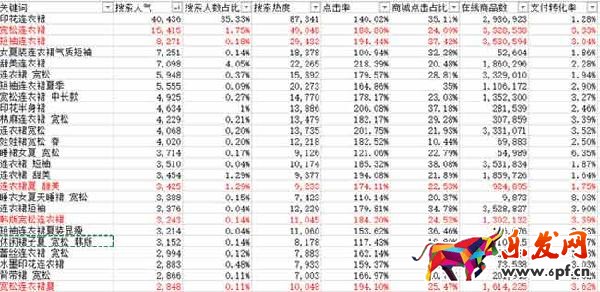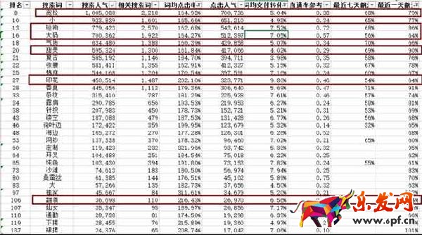 第二步:從整理的數(shù)據(jù)挑選出10-20個跟自己寶貝相關(guān)度高的修飾詞,先匹配熱搜詞了哪些詞是最近七天飆升最近一天飆升,優(yōu)先篩選出轉(zhuǎn)化率、點擊率高于平均值并且飆升的屬性詞,沒有則次之