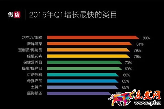 此外,微店還統(tǒng)計(jì)出Q1季度增長最快的類目,依次為巧克力/蛋糕,新鮮蔬菜,蛋制品/乳制品,綠植花卉,保健營養(yǎng)品等。