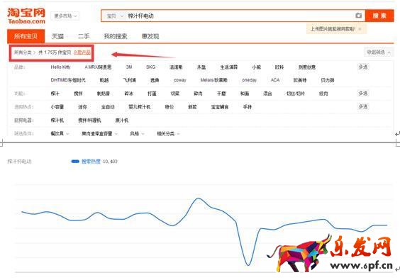 我們選的是“榨汁杯電動”,他的寶貝數(shù)及搜索指數(shù)如下: