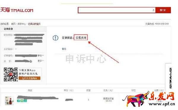 天貓交易關閉訂單截圖