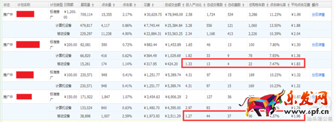 2.分析直通車報(bào)表,根據(jù)各個(gè)渠道的轉(zhuǎn)化數(shù)據(jù),以平均值為標(biāo)準(zhǔn)進(jìn)行調(diào)整。