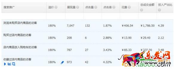核心客戶的優(yōu)點:精準(zhǔn)性最高。此類人群是瀏覽過未購買店內(nèi)商品的訪客、購買過店內(nèi)商品的訪客、店內(nèi)商品放入購物車的訪客、收藏過店內(nèi)商品的訪客,把我們的商品再一次展現(xiàn)于他們面前,由于這4類訪客對店鋪寶貝有所印象,因此點擊率效果最明顯,點擊幾率最大,引進(jìn)流量最精準(zhǔn)的人群渠道。因此,買家再次看到產(chǎn)品后直接下單購買幾率較大,很利于轉(zhuǎn)化提升。