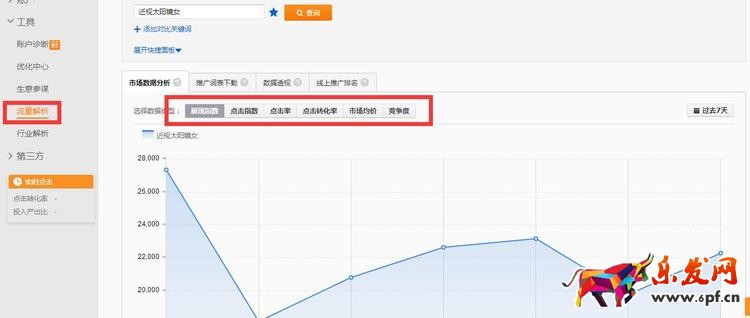 第一淘寶搜索下拉框推薦,找到自己的核心詞,下拉框推薦詞進(jìn)行流量解析里面的數(shù)據(jù)分析;直通車關(guān)鍵詞我們需要分析的數(shù)據(jù)有幾個,第一行業(yè)展現(xiàn)、第二行業(yè)點(diǎn)擊率、第三行業(yè)轉(zhuǎn)化率、第四點(diǎn)擊單價、第五競爭度。