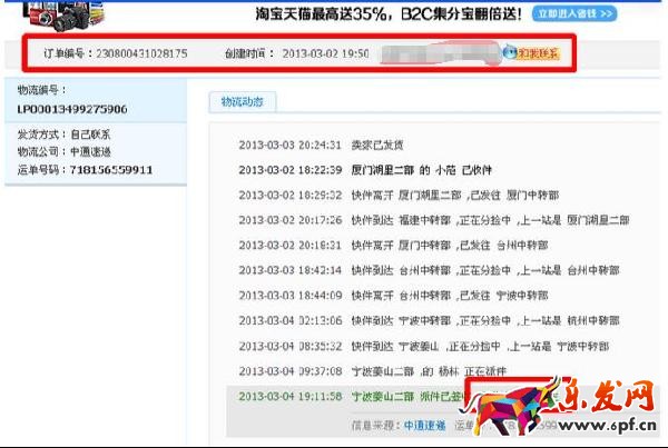 2.如果物流信息現(xiàn)實(shí)有人簽收了就截一下“物流跟蹤信息”圖給押款人(下圖所 示紅線所標(biāo)到的內(nèi)同全部截到),所以做實(shí)物墊付單,還應(yīng)學(xué)會看物流信息