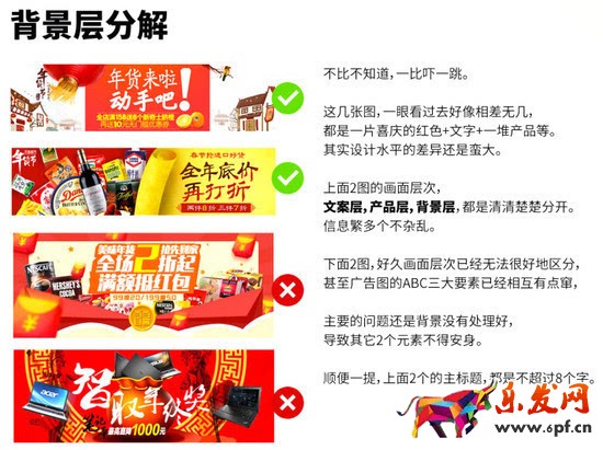 2秒原則:互聯(lián)網(wǎng)上的廣告圖,只有2秒的生存時(shí)間,要么被忽視,要么被關(guān)閉,要么被點(diǎn)擊。所有,請(qǐng)?jiān)趦擅雰?nèi)把想說(shuō)的事情說(shuō)完,不要裝逼耍內(nèi)涵!