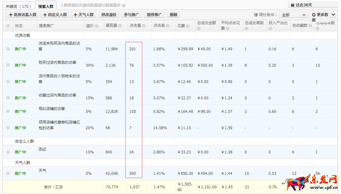 另外在計劃的提流過程中,也要注意多方位引流,除了主要的關(guān)鍵詞之外,定向和人群搜索也不能落下。如圖: