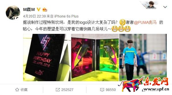 鹿晗收到由小李子代為刺繡的evoPOWER