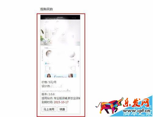 5、找到已經(jīng)購(gòu)買的模板,點(diǎn)擊 馬上使用 。