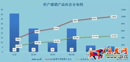 上面這張圖,我們發(fā)現(xiàn)了現(xiàn)在的庫(kù)存0-10個(gè)以下庫(kù)存的SPU占了總的停產(chǎn)滯銷款的36%,30個(gè)庫(kù)存以內(nèi)的占了58%,如果一個(gè)款庫(kù)存量大,我們可以通過活動(dòng)清理或者花精力推,但是對(duì)于那些就幾個(gè)十幾個(gè)庫(kù)存的,是非常難清理的,又占據(jù)了店鋪過長(zhǎng)SPU,影響動(dòng)效率,花精力推又沒有貨,因此也可以嘗試找下線下渠道,尾貨清理等,總比壓著資金占著庫(kù)存和損耗,而大部分運(yùn)營(yíng)都是業(yè)績(jī)?yōu)橹鳎芏鄷r(shí)候會(huì)忽略這些庫(kù)存問題,拼命開發(fā)要貨。