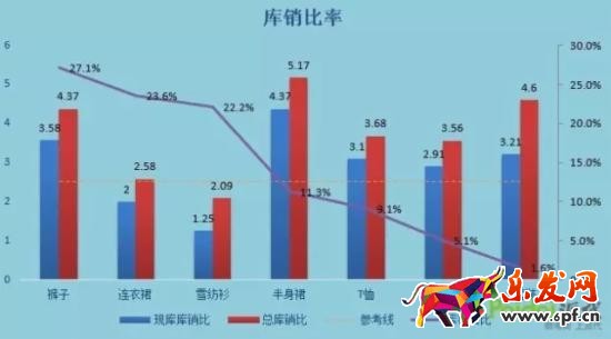 b連衣裙和雪紡衫(配合褲子主類的搭配),是所有品類中,庫(kù)銷控制最合理,也是拉低整體庫(kù)銷比最重要的地方了。