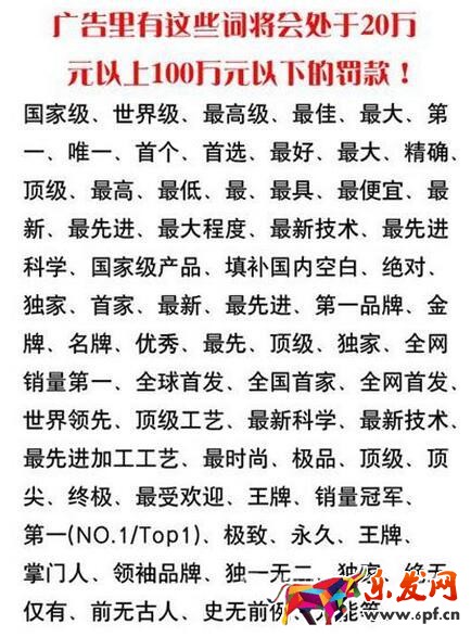 雖然感覺這個很不合理,但是沒辦法,大家小心謹慎。以上字眼,慎用。關(guān)于極限詞的匯總大家看下面: