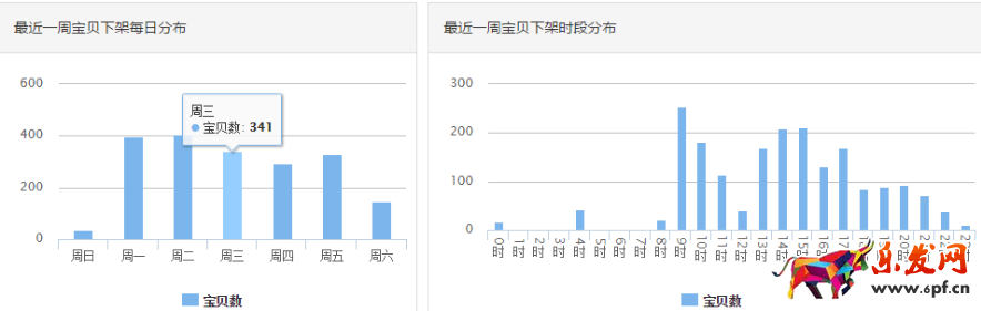 2、關(guān)注競(jìng)爭(zhēng)對(duì)手的上下架時(shí)間。我們都知道,越靠近上下架時(shí)間,寶貝的自然搜索權(quán)重越高,排名越靠前。從下圖我們可以看出對(duì)手的上下架時(shí)間分布,我們可以研究對(duì)手為什么將上下架時(shí)間放在這段時(shí)間,是因?yàn)檫@段時(shí)間流量大還是因?yàn)檫@段時(shí)間競(jìng)爭(zhēng)小。如果產(chǎn)品足夠競(jìng)爭(zhēng)力,可以考慮同對(duì)手放在相似時(shí)間上下架,如果競(jìng)爭(zhēng)力稍弱,最好錯(cuò)開時(shí)間。另外多說一句:上下架最好不要把寶貝集中在一兩天或者一兩個(gè)時(shí)段,所謂雞蛋不要放在一個(gè)籃子里,每天都有一定量的寶貝上下架可以保證流量比較均勻。