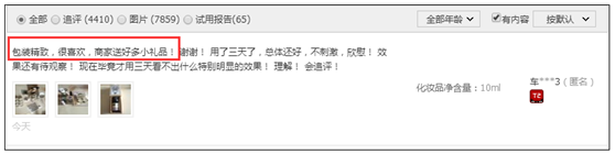 驚喜的贈(zèng)品策略。最擅長(zhǎng)用這個(gè)的就是阿芙了(我知道的),“讓顧客拆包拆到手軟”。新奇特的小東西、相關(guān)的東西、品質(zhì)要好,成本不一定多高,樣子多幾個(gè),量可以小。這些都會(huì)讓消費(fèi)者驚喜。你可以看淘寶上的很多評(píng)論,圍繞著贈(zèng)品給的全五分帶字好評(píng),非常的多,很普遍。