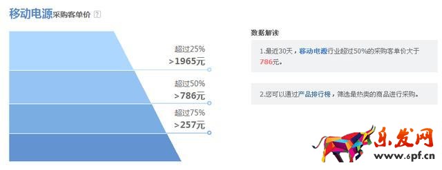 以圖可以看出,最近30天,移動(dòng)電源行業(yè)超過50%的采購客單價(jià)大于786元。您可以通過產(chǎn)品排行榜,篩選最熱賣的商品進(jìn)行采購。