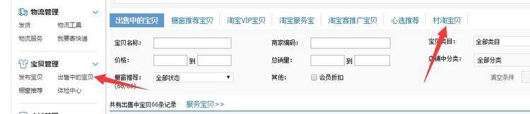 發(fā)布村淘寶貝:賣家后臺(tái)-出售中的寶貝-看下圖