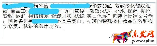 涉案商品批準(zhǔn)文號(hào)為國(guó)妝備進(jìn)字,并非特妝準(zhǔn)字,不屬于特殊化妝品,但被告卻在商品描述頁面宣傳特殊化妝品功效(美白、祛斑等),存在虛假宣傳的情況,違反《中華人民共和國(guó)廣告法》;