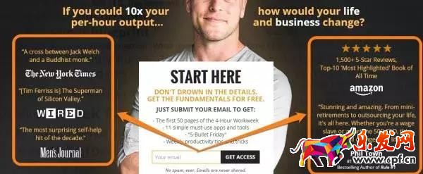 Tim Ferriss的網(wǎng)站是一個(gè)很好的例子: