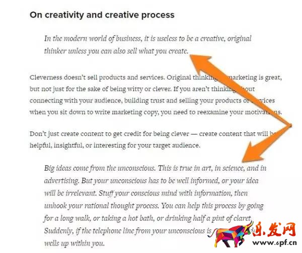 在你的內(nèi)容中引用一個(gè)權(quán)威是另一種方法,從你所在領(lǐng)域公認(rèn)的權(quán)威統(tǒng)計(jì)數(shù)據(jù)(就像我一樣)。例如,博客引用了David Ogilvy討論創(chuàng)造力和寫作: