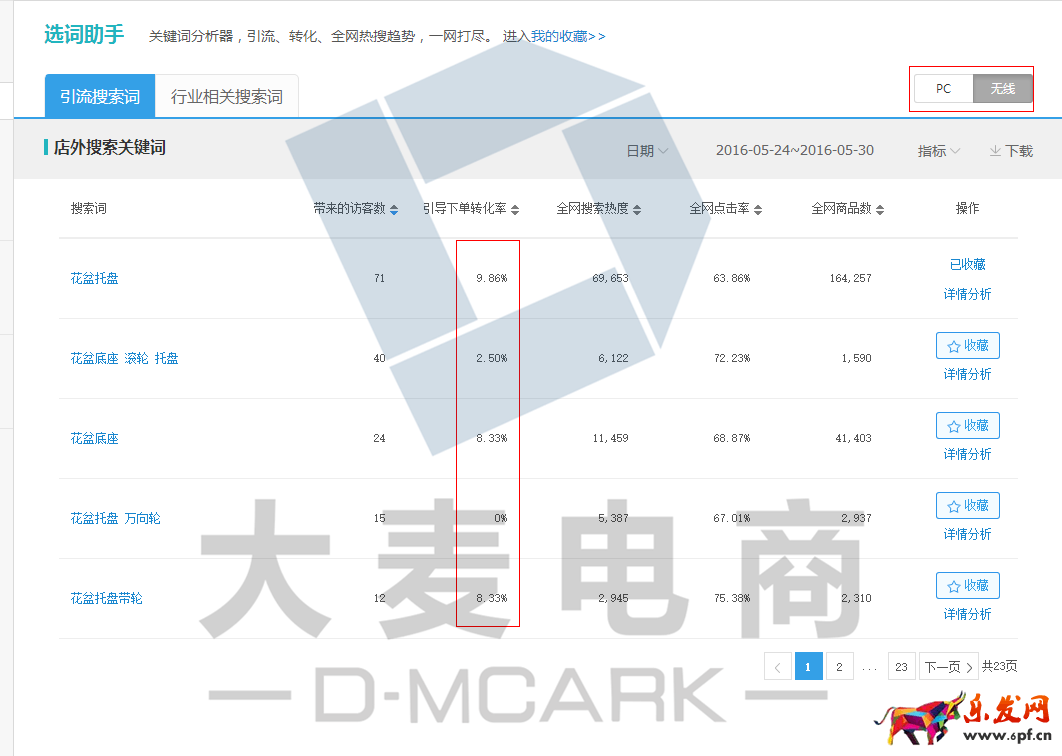 4.通過生意參謀選詞助手選詞,平時,買家通過搜索進(jìn)入店鋪的關(guān)鍵詞都會在這里,主要添加無線端訪客量數(shù)據(jù)大,有轉(zhuǎn)化的關(guān)鍵詞就可以了。