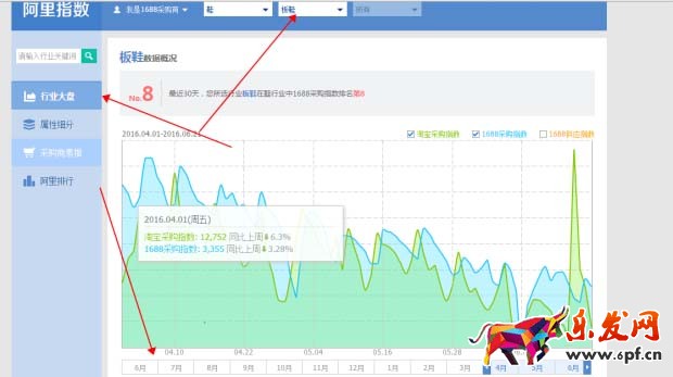 我們從這里來(lái)挖掘出要做的產(chǎn)品,好了,還是說(shuō)說(shuō)女鞋,畢竟我之前做的女鞋就是這樣挖出來(lái)的。先確定要做哪個(gè)細(xì)分類目,不要去夏天做棉鞋,要順勢(shì)而為。首先點(diǎn)行業(yè)大盤(pán),進(jìn)入頁(yè)面,選擇品類,鞋——板鞋,或者其他你想做的,如圖: