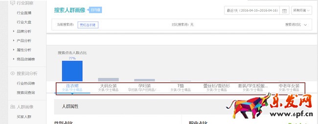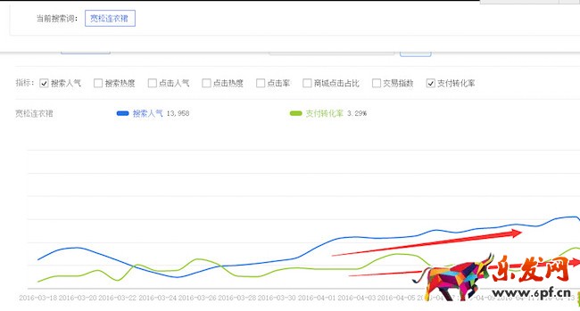 下面以“寬松連衣裙”這個核心詞分析為例子:1.從最近七天看,搜索人氣在持續(xù)增長,轉(zhuǎn)化率也有穩(wěn)定上升的態(tài)勢。