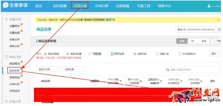 1)對(duì)于基礎(chǔ)流量較高的店鋪,直通車款式的篩選可以通過生意參謀-經(jīng)營分析-商品效果-單品分析-銷售分析進(jìn)行選款;